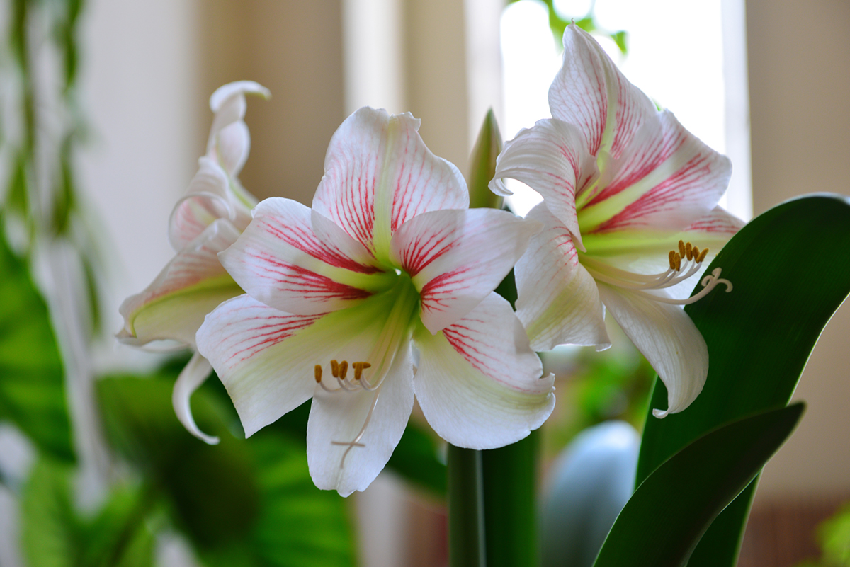 Amaryllis: Amaryllis (Hippeastrum) is very easy to grow and will readily bloom again next December with just a little bit of care. After blooming, cut off the flower stem and continue letting the top inch of potting mix dry out between waterings.