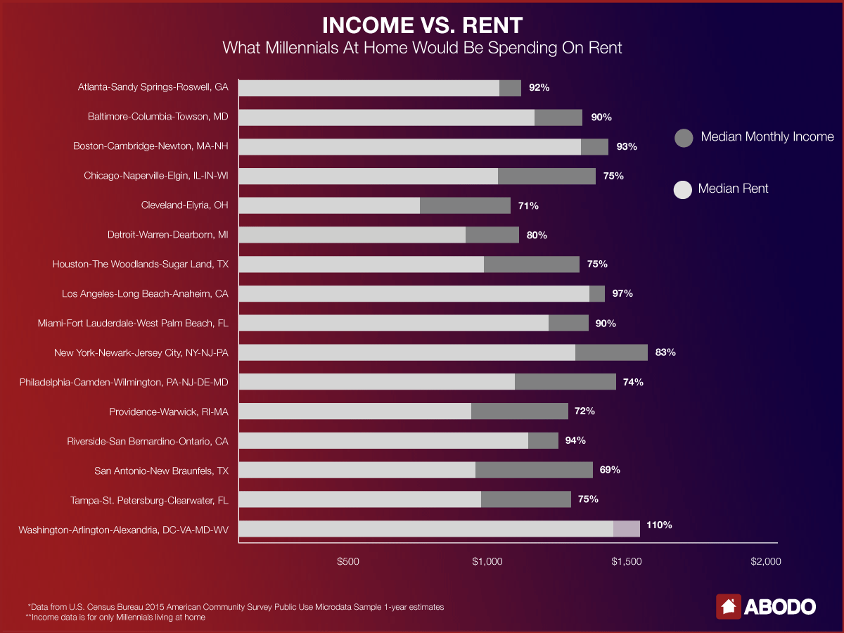 Student debt, housing affordability and income are commonly tossed out as the culprits behind Millennials needing to move back in with their parents. The details, however, expand a lot farther than there, as a new report from ABODO, an apartment hunting website, unravels after analyzing data from the U.S. Census Bureau.