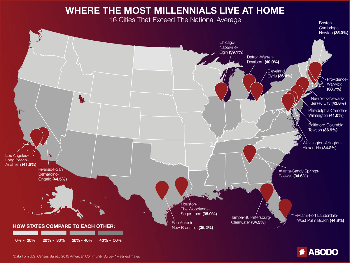 ABODO decided to break down the cities with the highest percentage of Millennials living at home, along with why this is happening.
